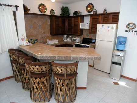 Three guesthouse casitas with 3 extra bedrooms are available for larger groups. On the ground level is one bedroom with a queen bed and a single bed. On the upper level are 2 bedrooms; each with a king bed. The lower level casita can sleep 3 people and each upper level bedroom can sleep 2 people, thereby increasing the villa's total occupancy to a maximum of 17 people if both casitas are fully occupied.
